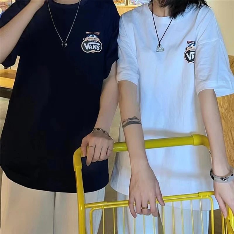 High street male and female couples casual loose printed short sleeves round neck short sleeves
